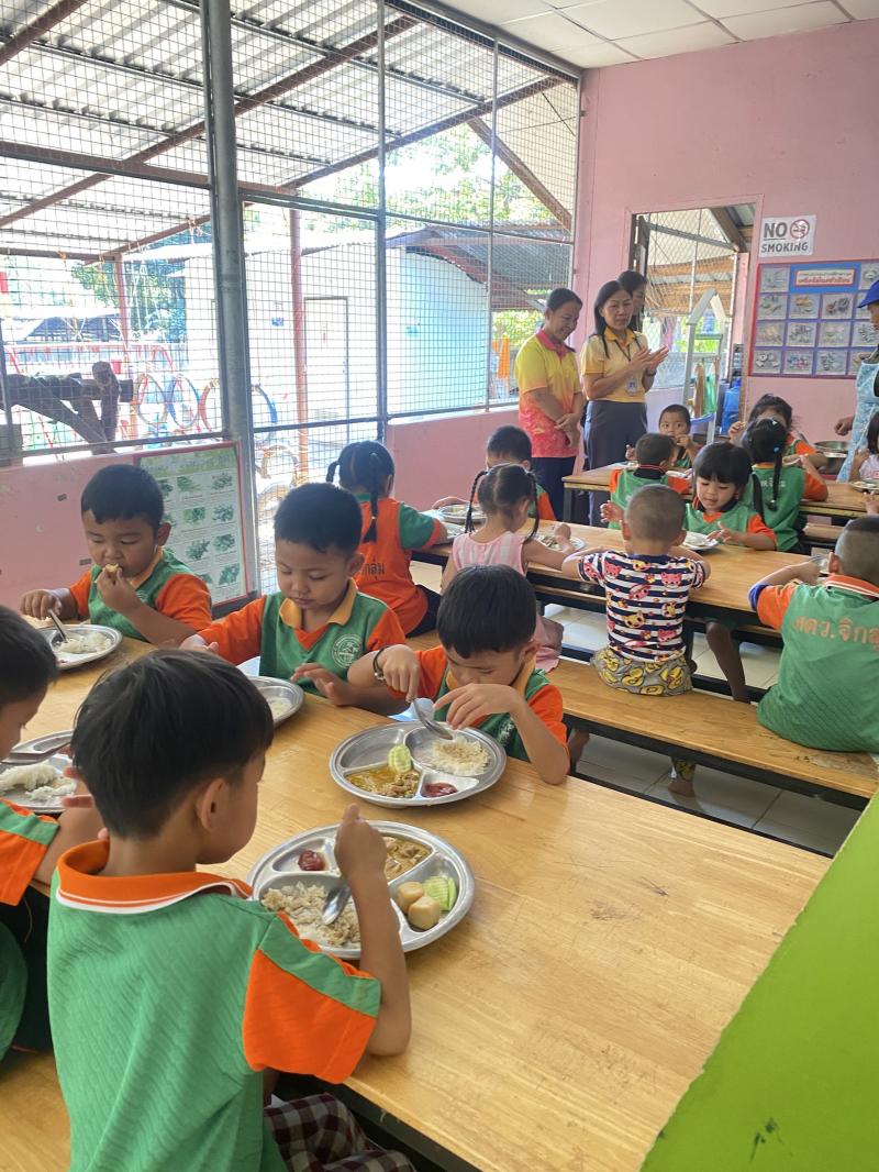 รายละเอียด : วันที่18 กุมภาพันธ์ 2568นายประวิทย์ ภาเรือง นายกองค์การบริหารส่วนตำบลจิกเทิง และ นายอาทิตย์ มีสุข ปลัดองค์การบริหารส่วนตำบลจิกเทิง ได้มอบหมายให้ นางสาวธัญลักษณ์ บุญพรม ผู้อำนวยการกองการศึกษา พร้อมด้วยนางสาวอัญชนา อินทร์เอี่ยม นักวิชาการศึกษา และผู้ช่วยนักวิชาการศึกษา ได้ลงพื้นที่ตรวจเยี่ยม ติดตาม และประเมินผลการดำเนินโครงการอาหารกลางวัน โดยได้ลงพื้นที่ศูนย์พัฒนาเด็กเล็กวัดบ้านจิกลุ่ม การตรวจเยี่ยมในครั้งนี้ก็เพื่อให้นักเรียนได้รับประทานอาหารกลางวันที่มีคุณค่าทางอาหาร ถูกต้องตามหลักโภชนาการ ทำให้นักเรียนได้รับสารอาหารครบ 5 หมู่ มีสุขภาพร่างกายที่สมบูรณ์ แข็งแรง ส่งผลให้มีพัฒนาการทางด้านร่างกาย จิตใจ และสติปัญญาที่พร้อมเรียนรู้ได้อย่างเต็มประสิทธิภาพ ทั้งนี้ศูนย์พัฒนาเด็กเล็กวัดบ้านจิกลุ่ม ได้ดำเนินการเป็นไปด้วยความเรียบร้อย